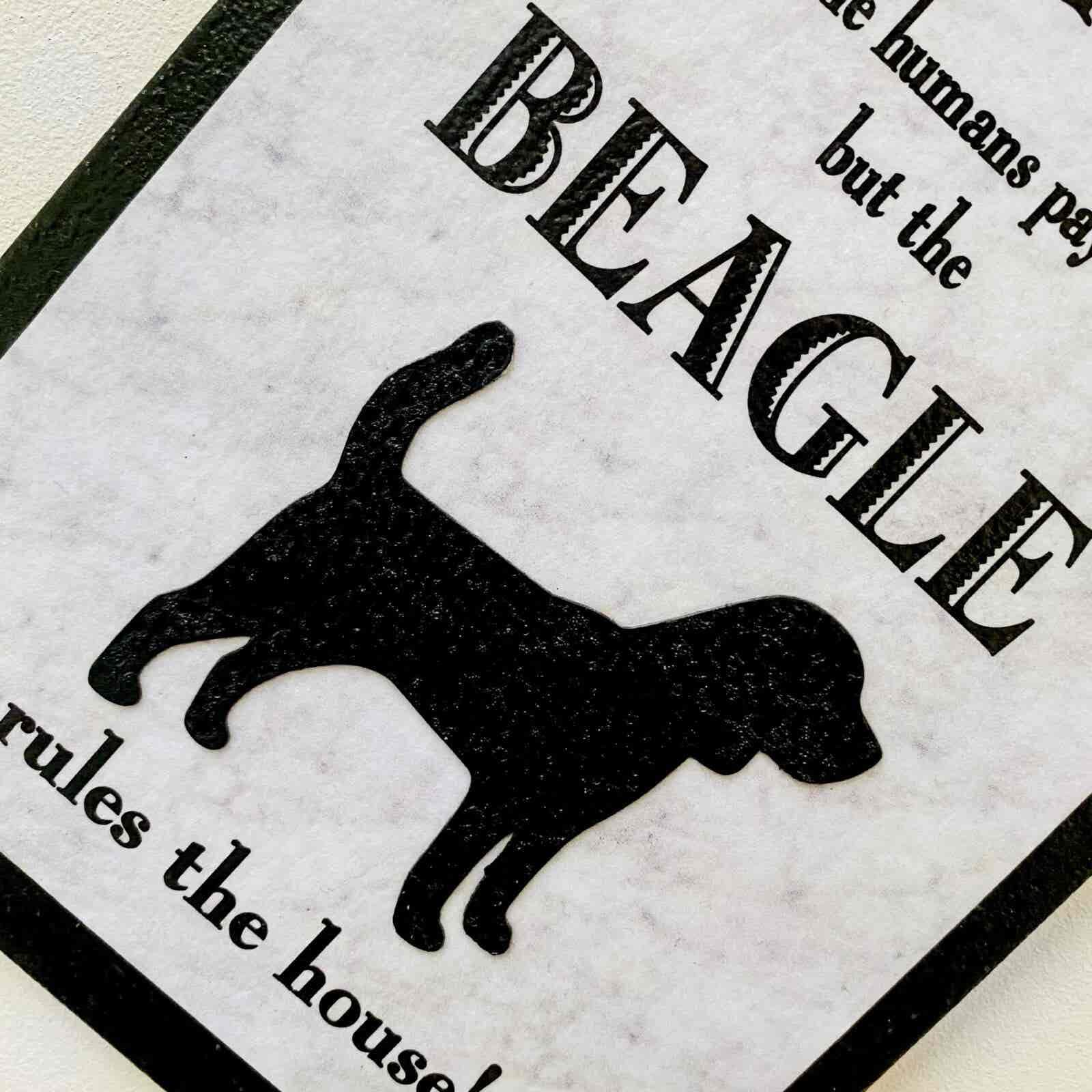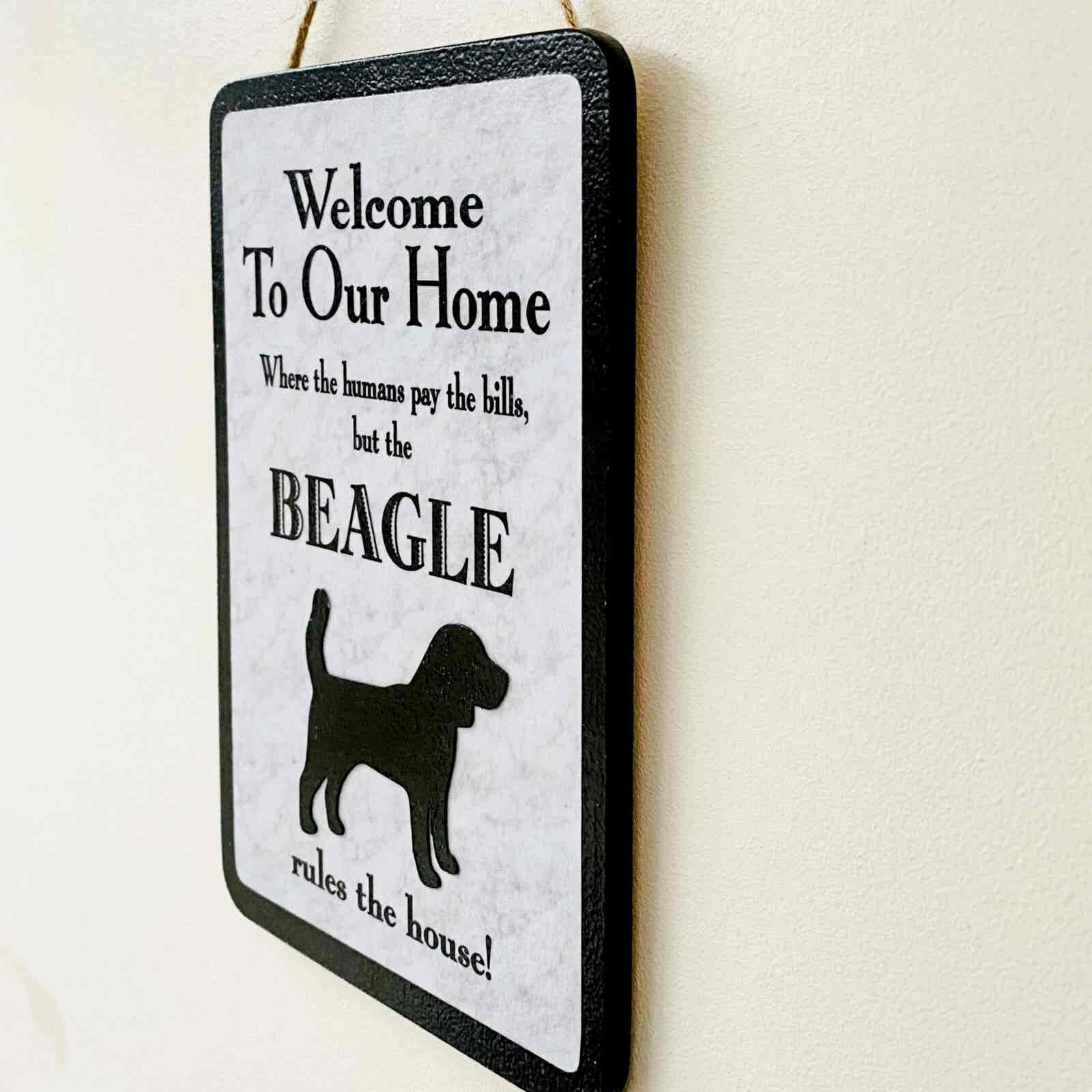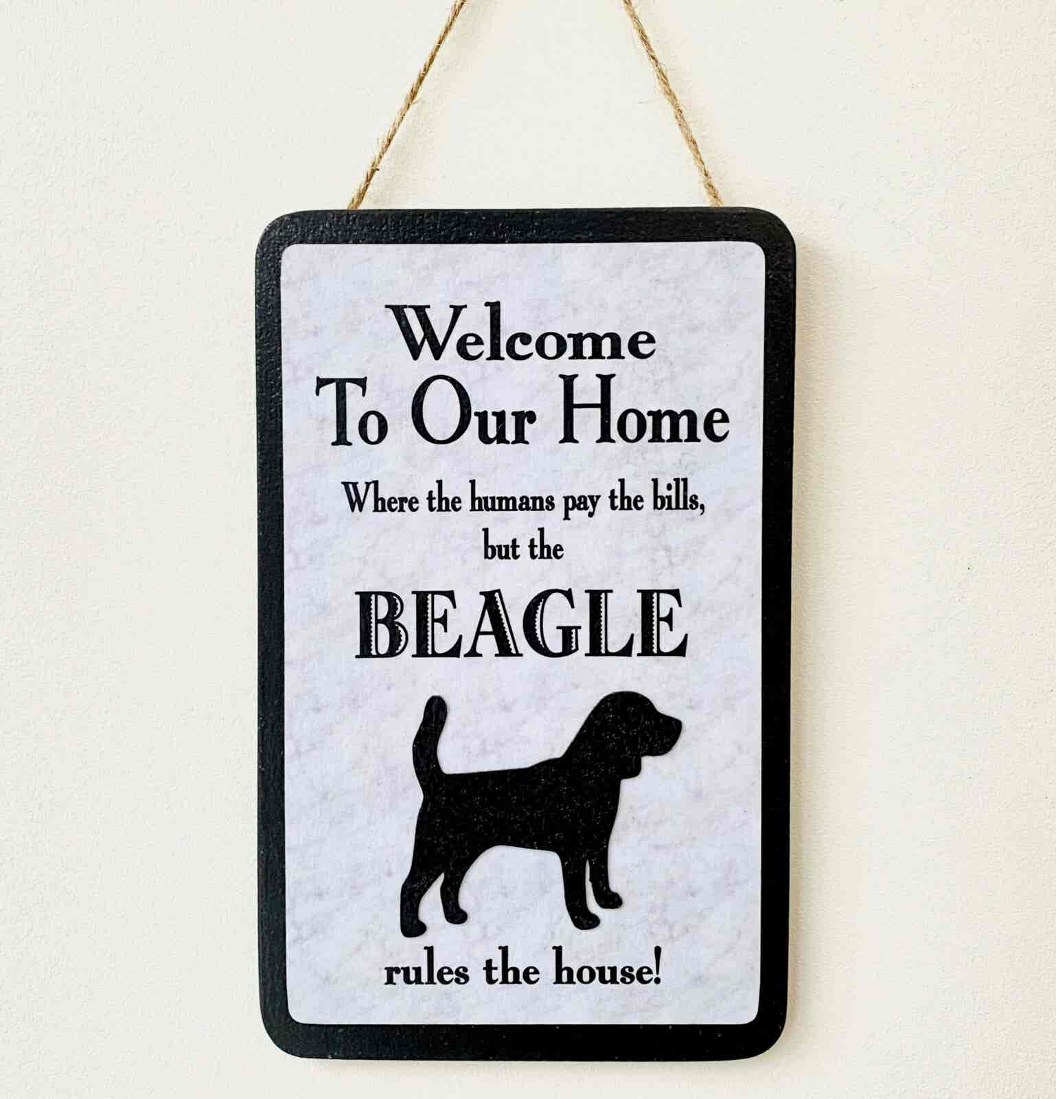 An original design, handmade “Welcome to Our Home” plaque, featuring the Beagle.