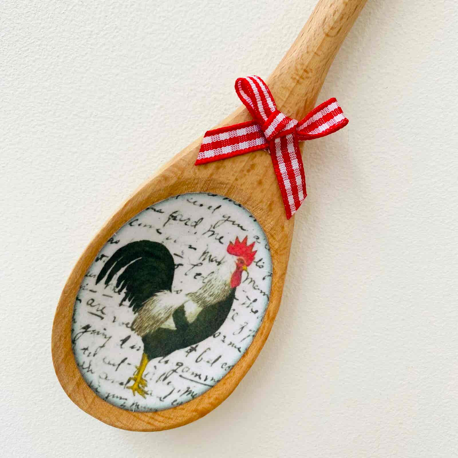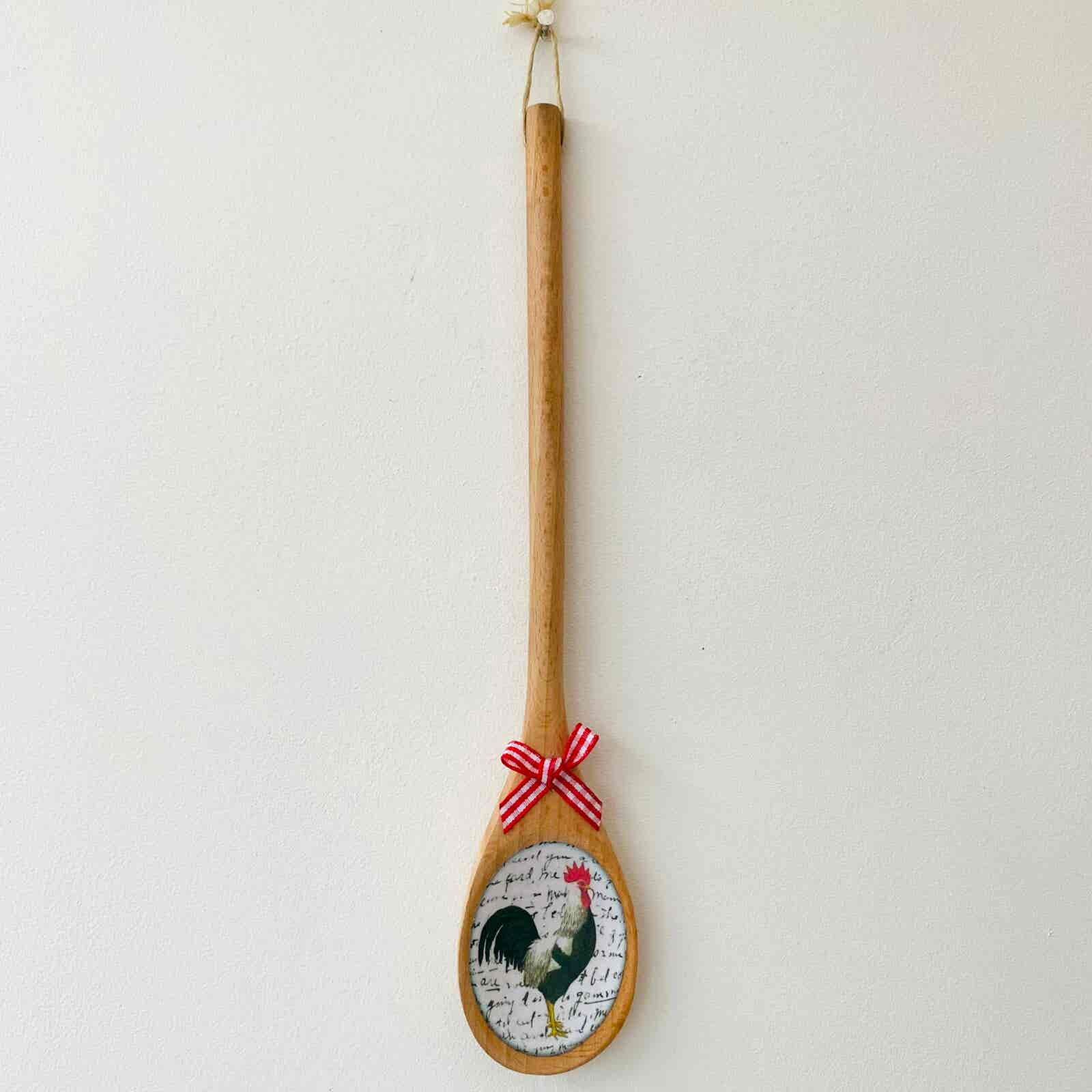 This is a decorative wooden spoon, especially for those that like chickens and cockerels.