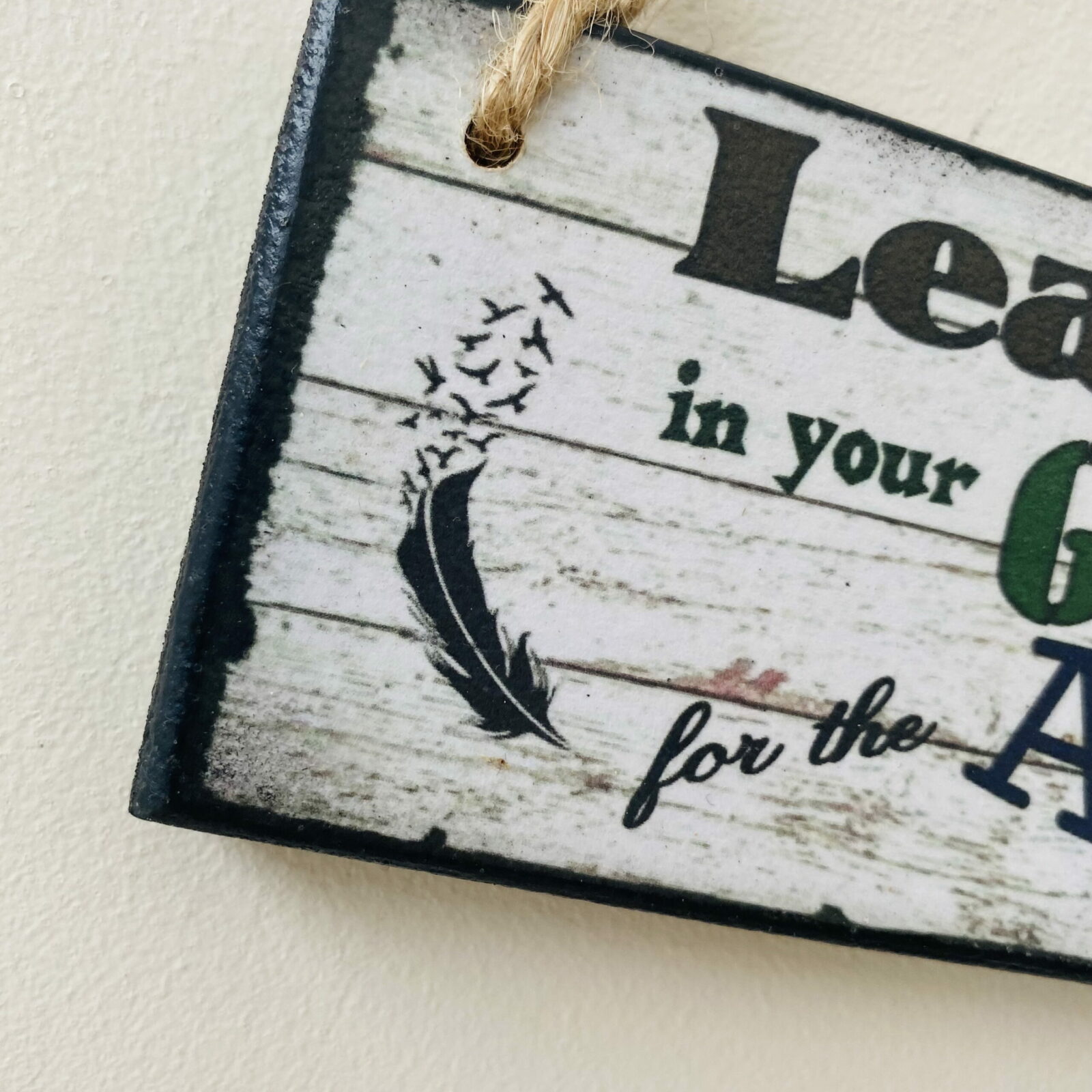 An original design, handmade wooden plaque, with a natural jute hanging, made from 12mm MDF.