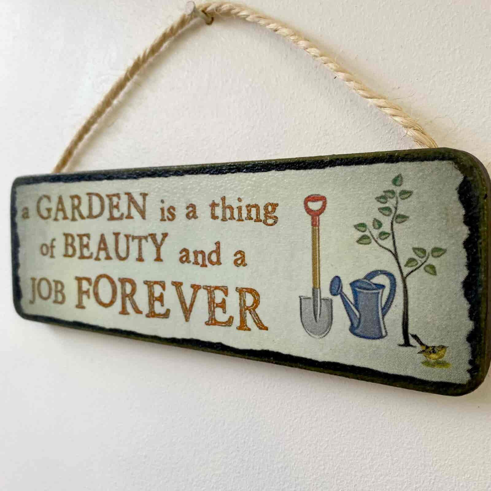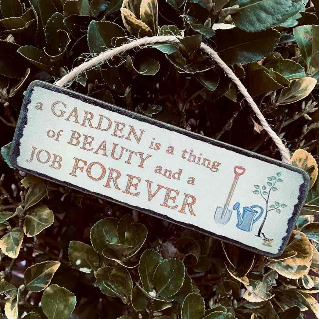 This “A garden is a thing of beauty, and a job forever” sign is a great gift for any gardener and will look lovely hanging by the back door, overlooking the garden.