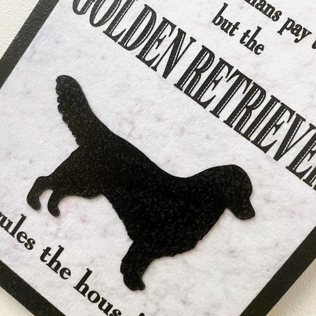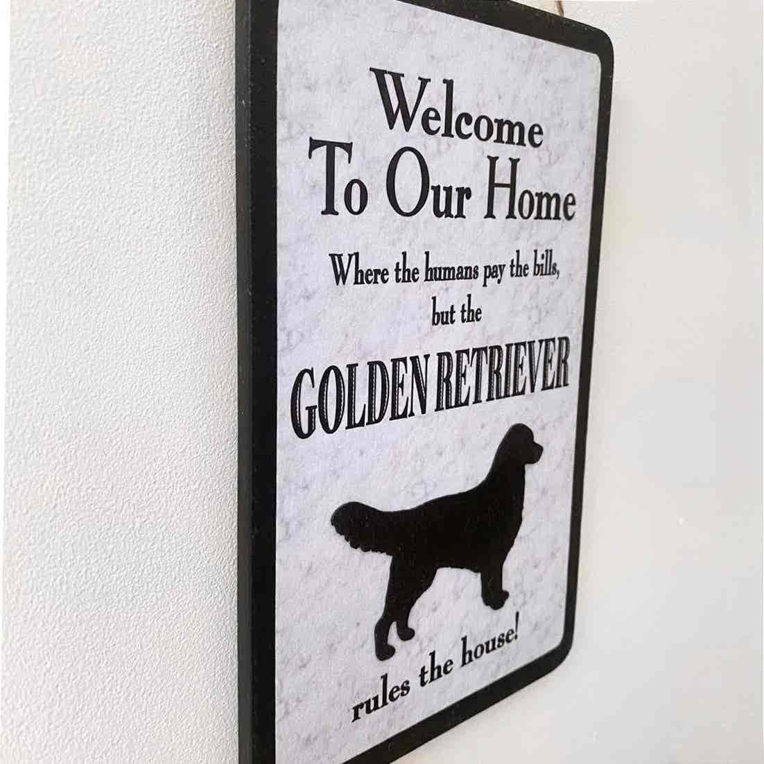 An original design, handmade “Welcome to Our Home” plaque, featuring a Golden Retriever.