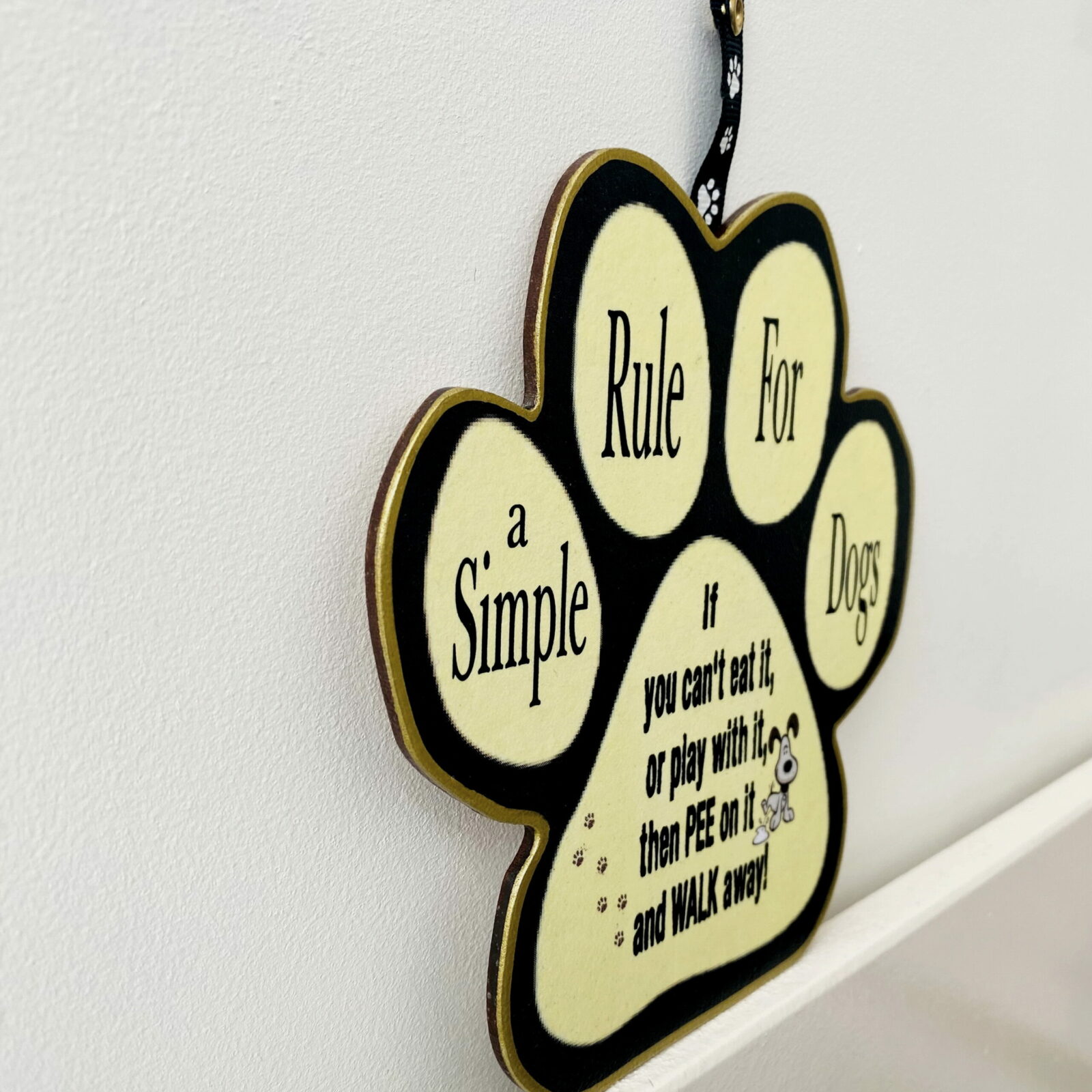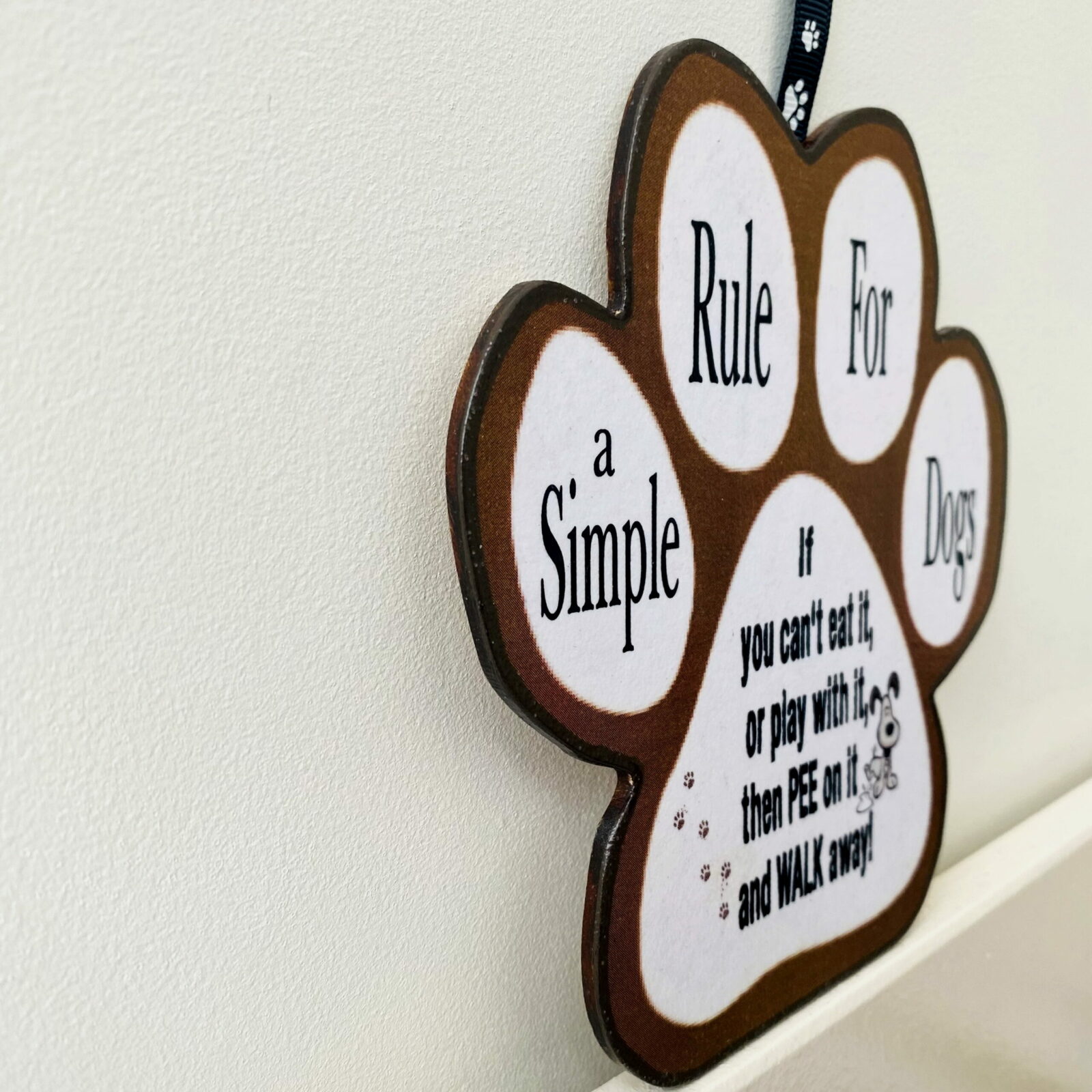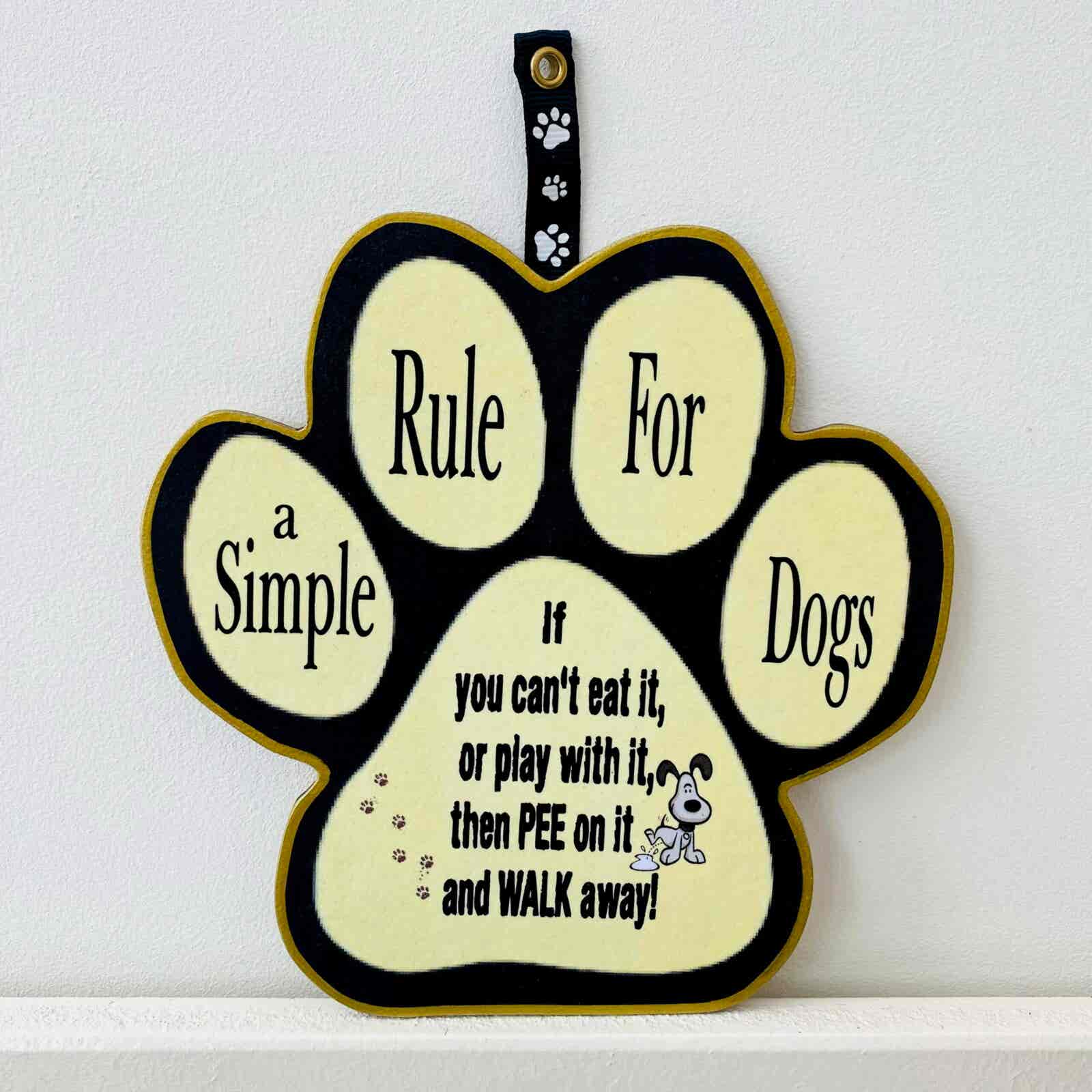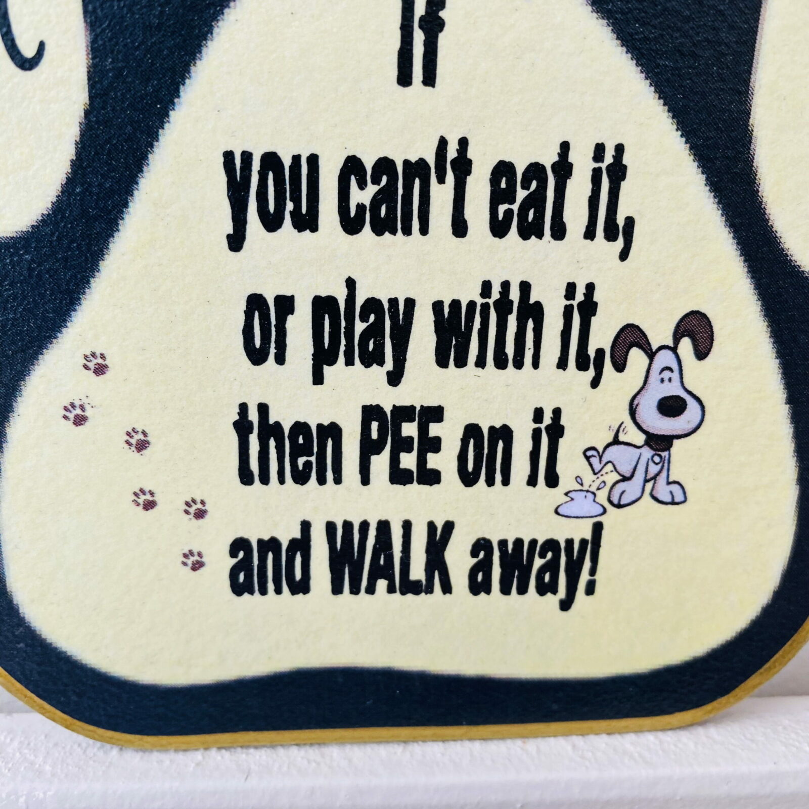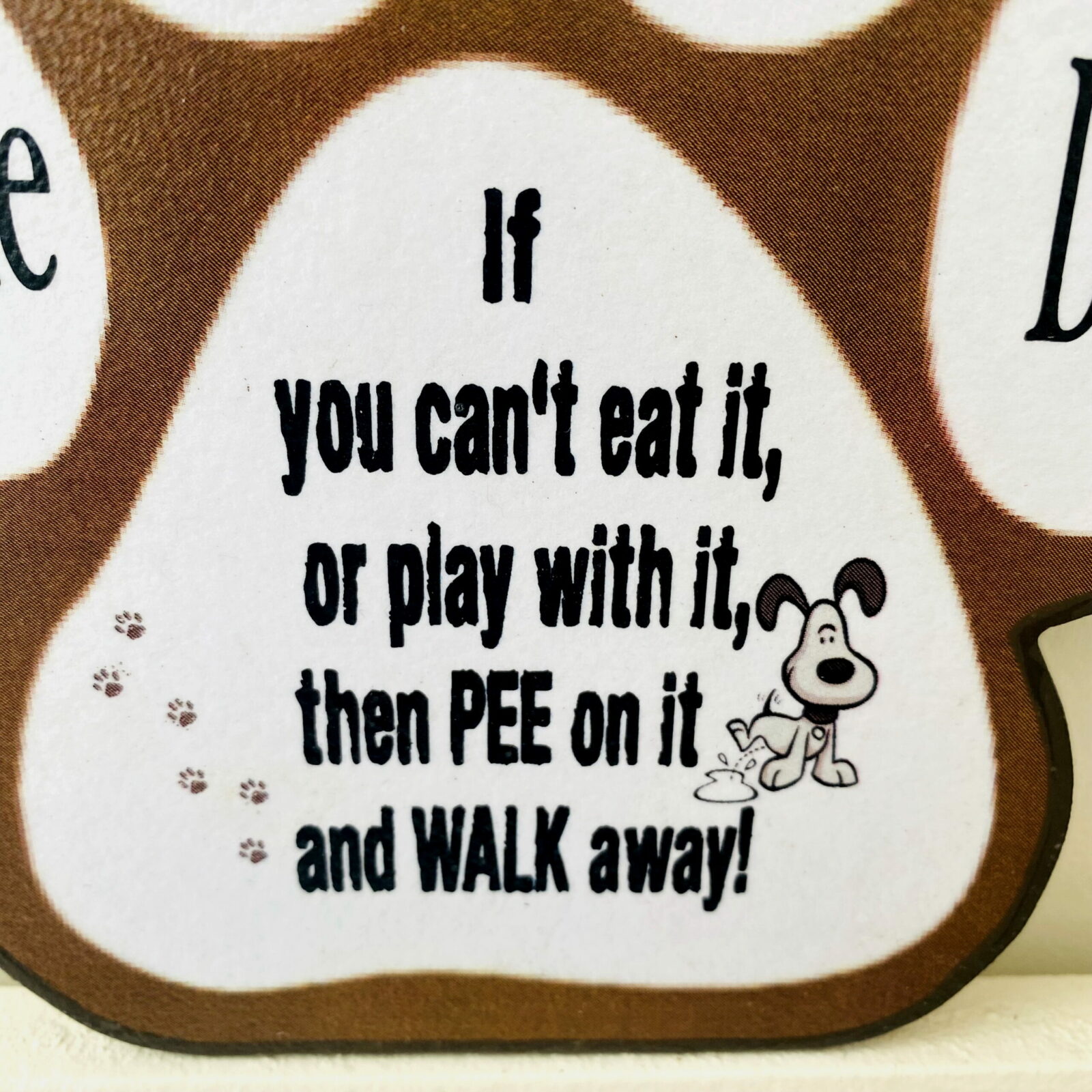 This a paw print shaped plaque, with the humorous quotation – “If you can’t eat, or play with it, then pee on it and walk away!”