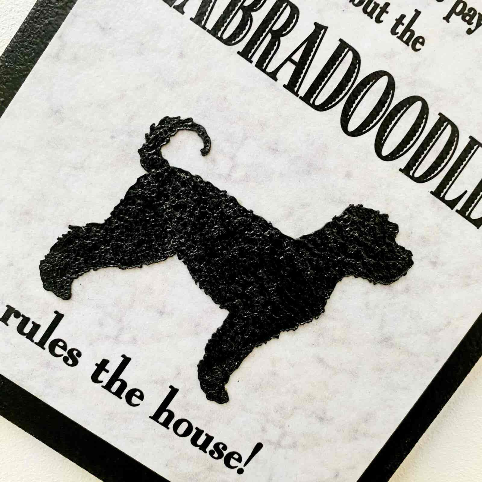 Beautifully finished, with a machine cut embossed Labradoodle to compliment the design.