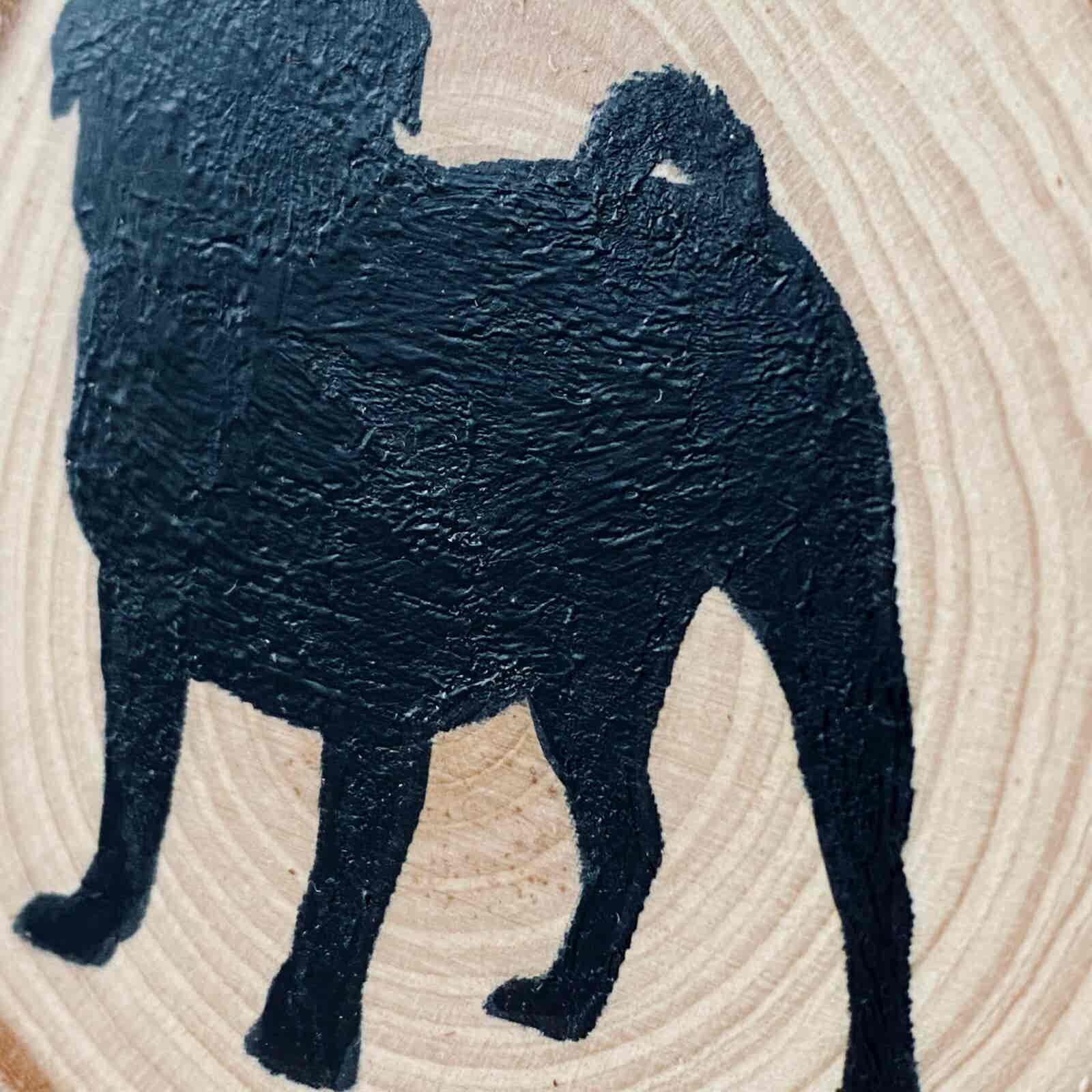 Beautifully finished, with a Pug silhouette on the log, that has been painted with black acrylic paint and varnished.