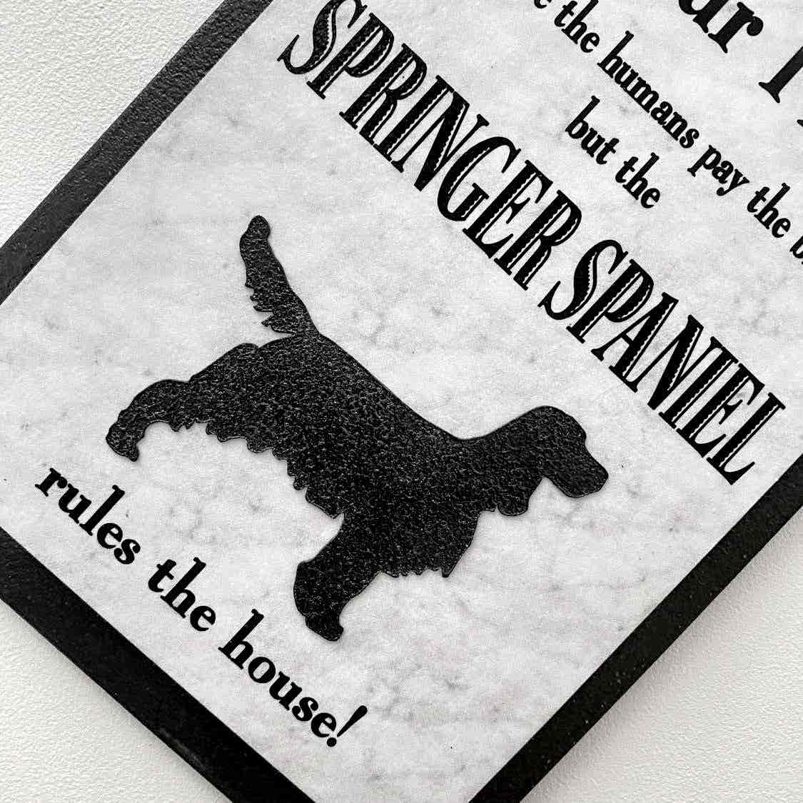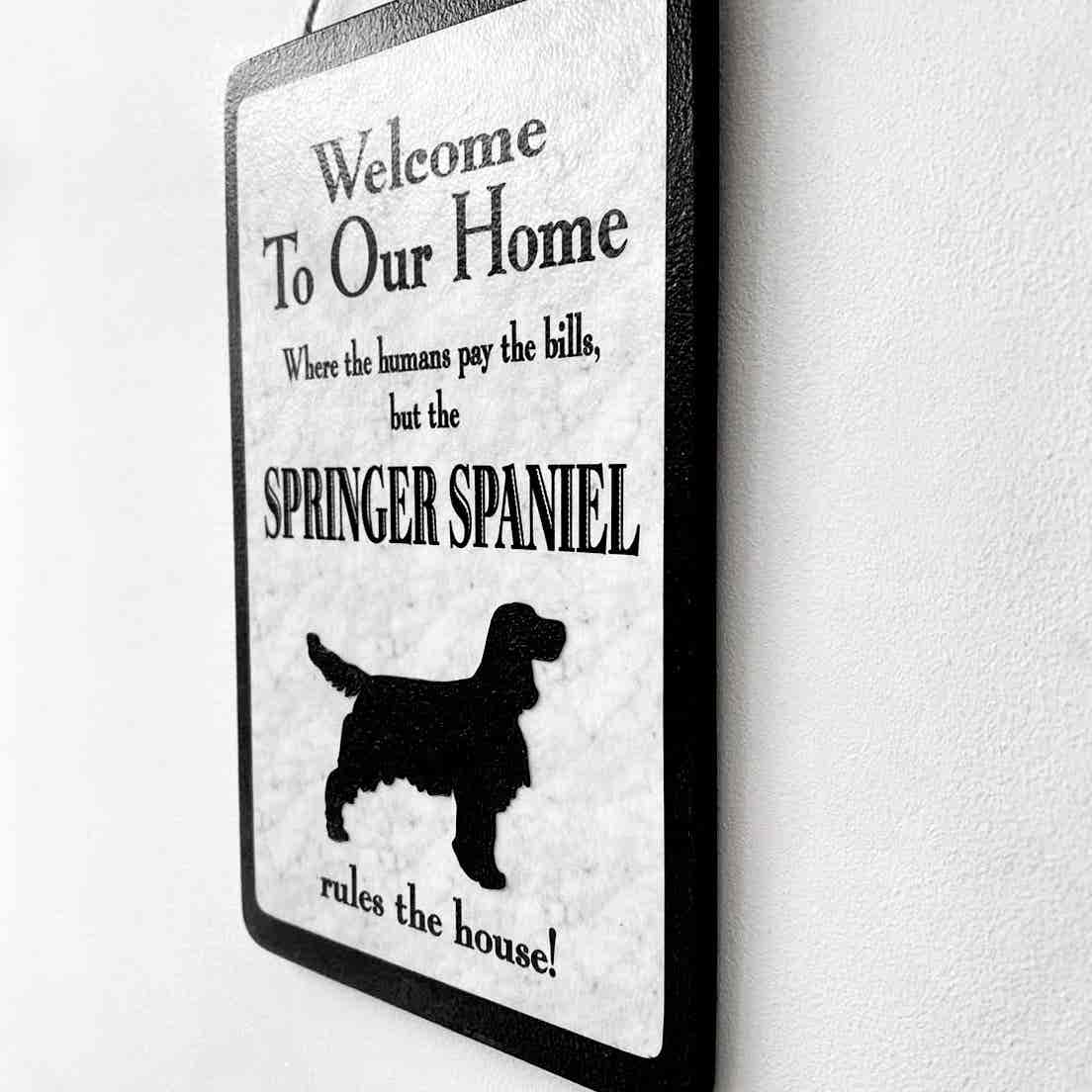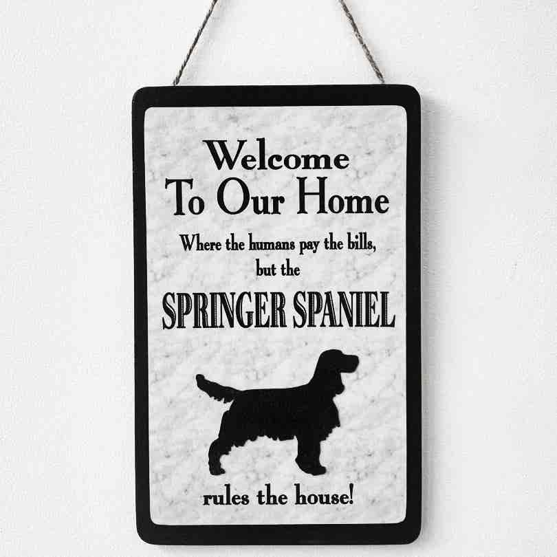 An original design, handmade “Welcome to Our Home” plaque, featuring a Springer Spaniel.