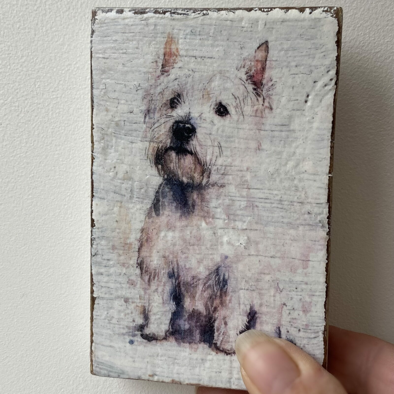 This little wooden plaque would make a lovely thoughtful gift for a Westie owner, and is either freestanding or can be hung from the sawtooth hanger on the back.