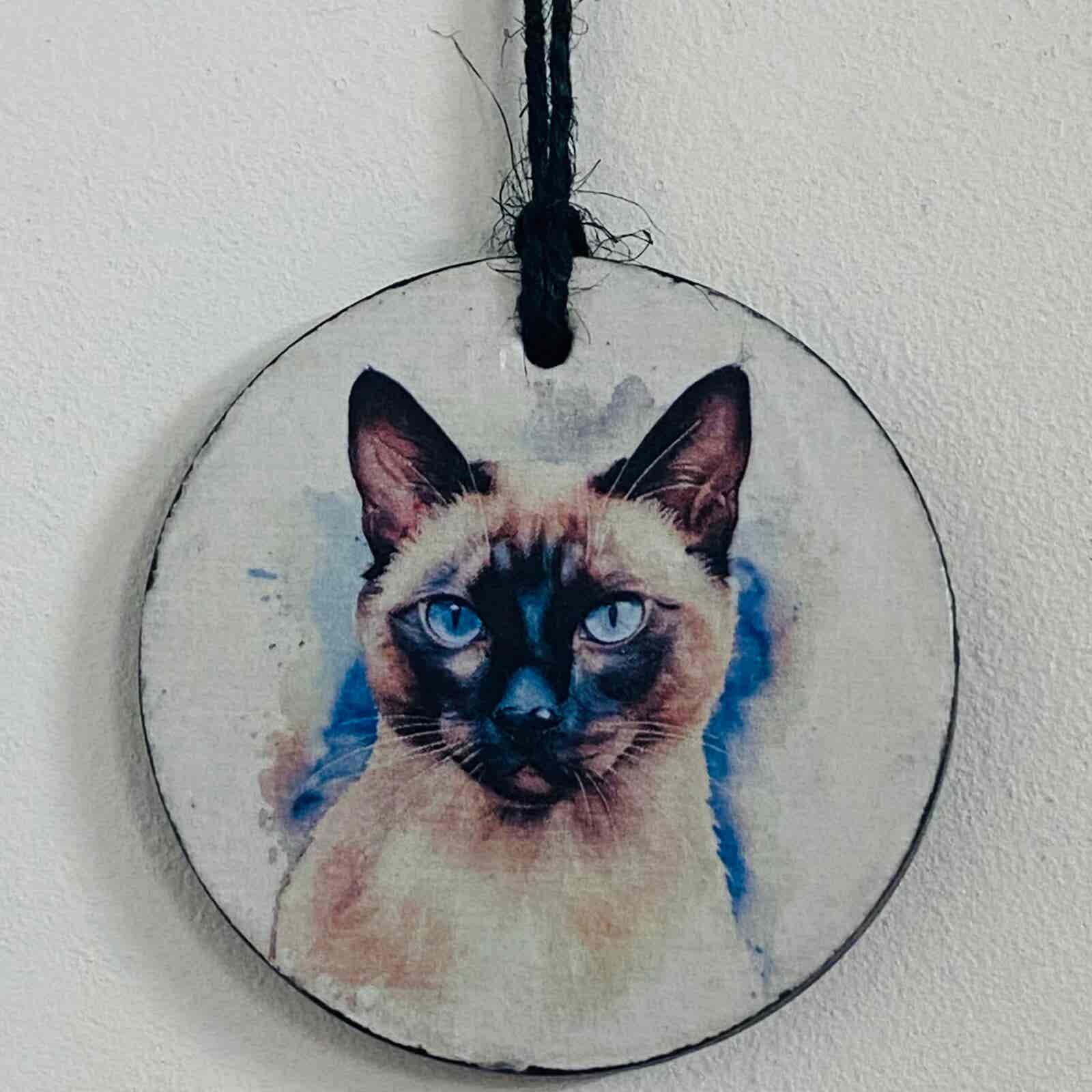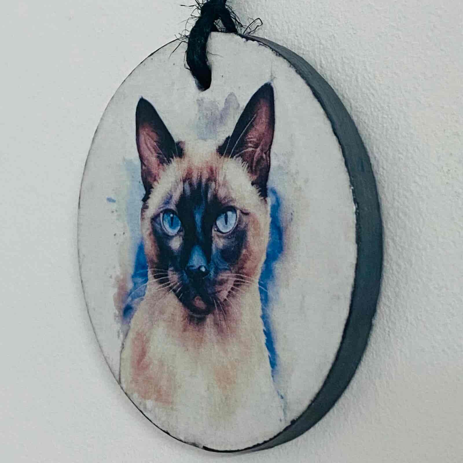 This is a beautiful slate circle, which has been painted with a pale cream chalk paint and decorated with a water colour paint effect Siamese cat. There are 2 different designs to choose from .