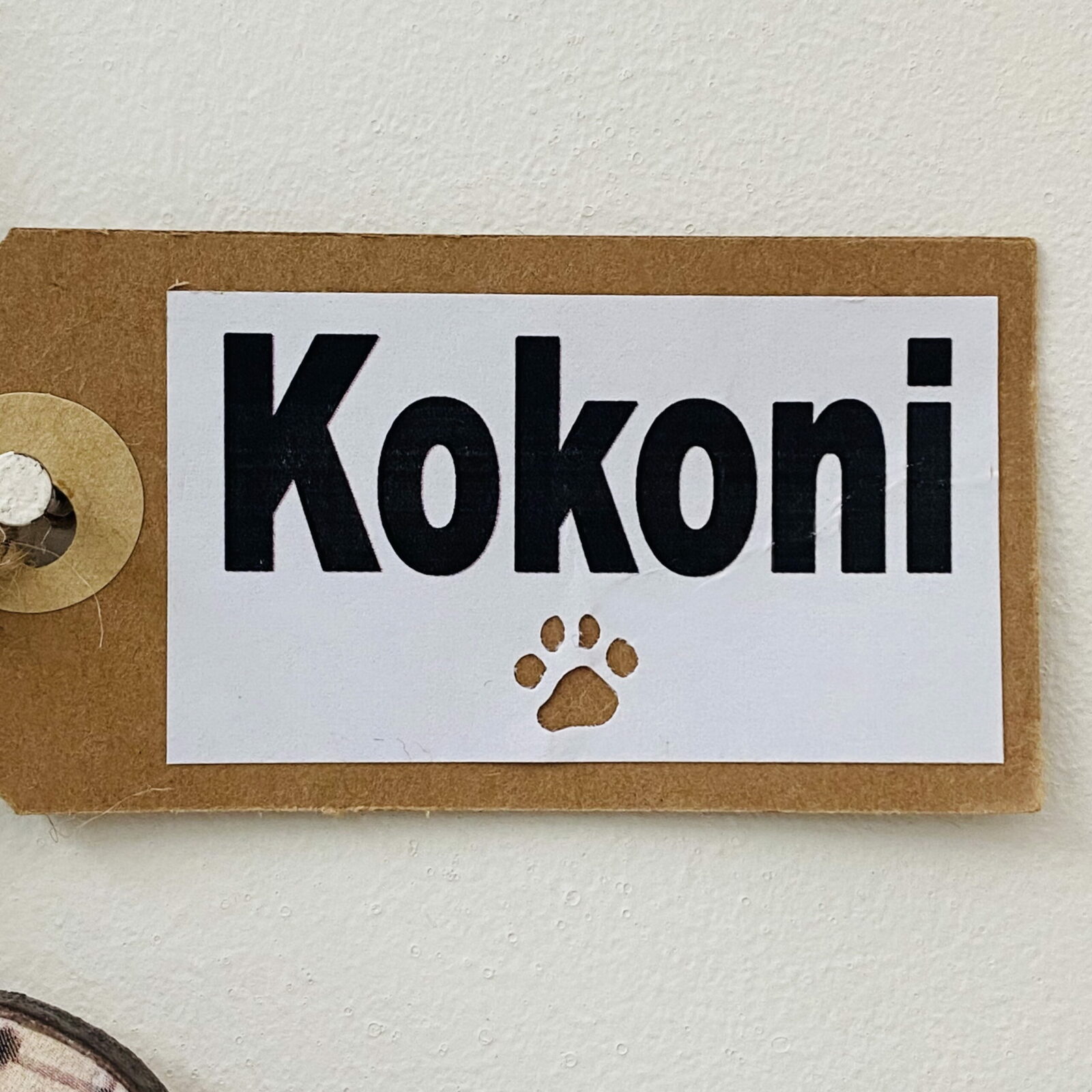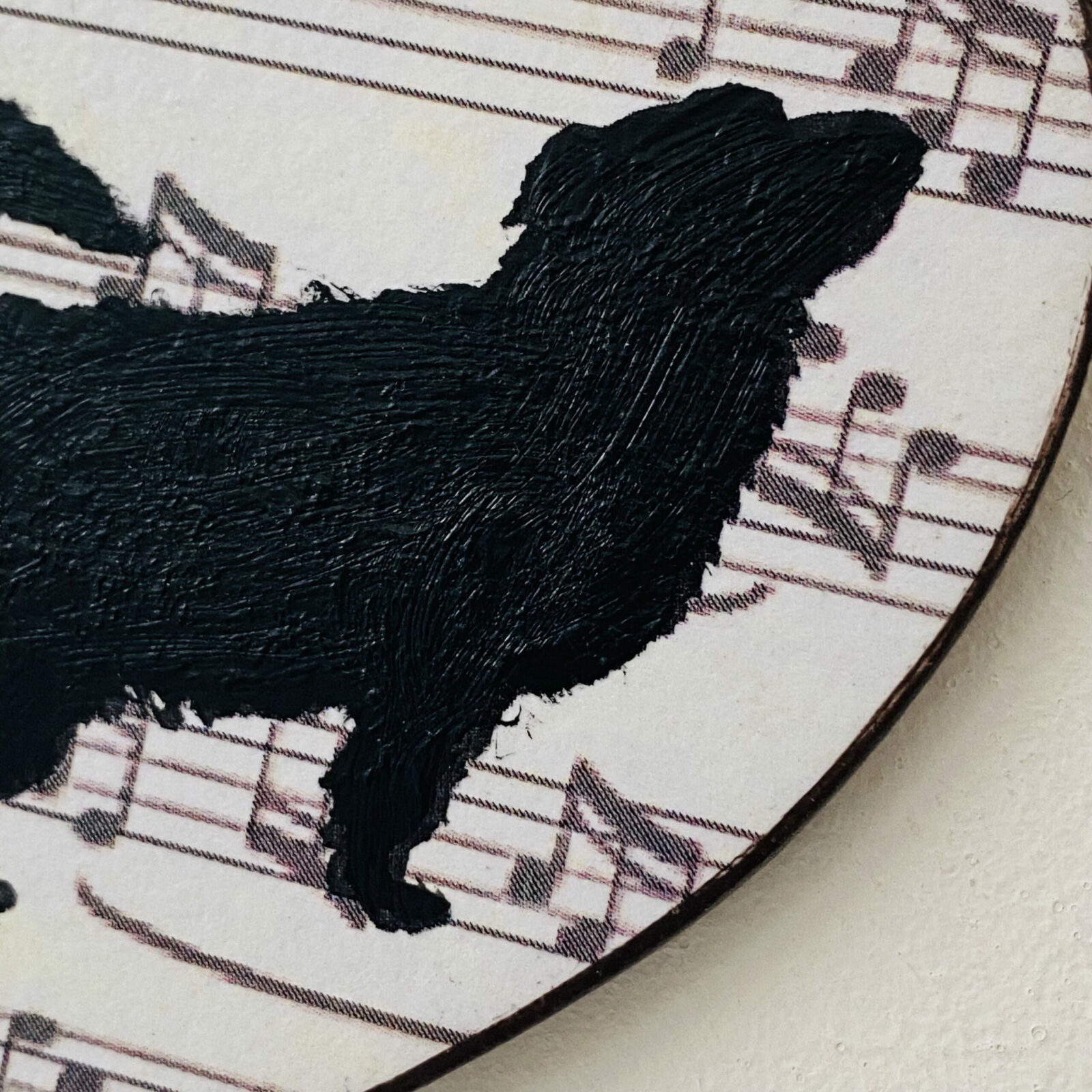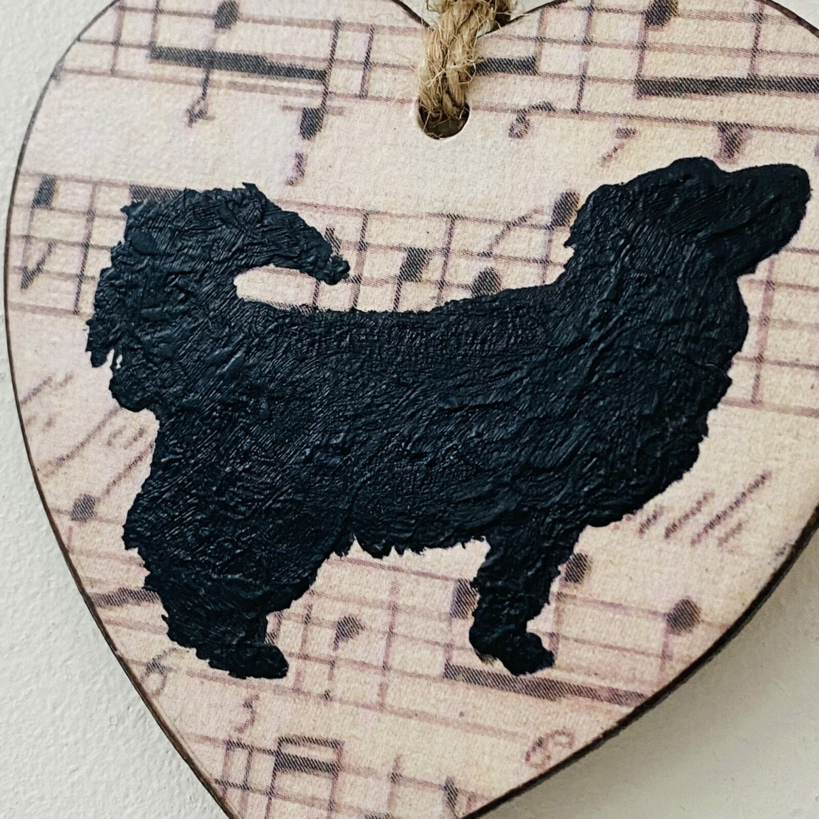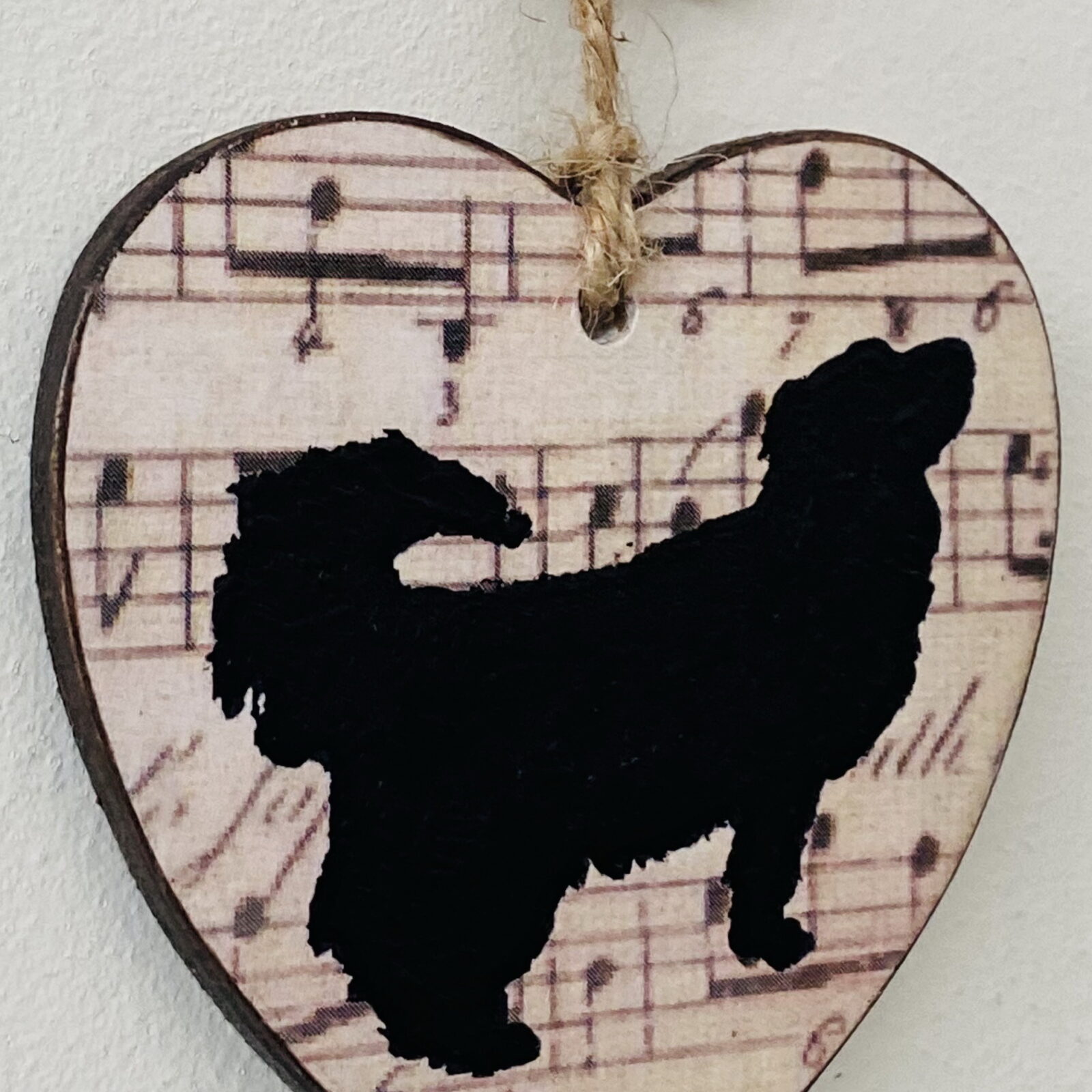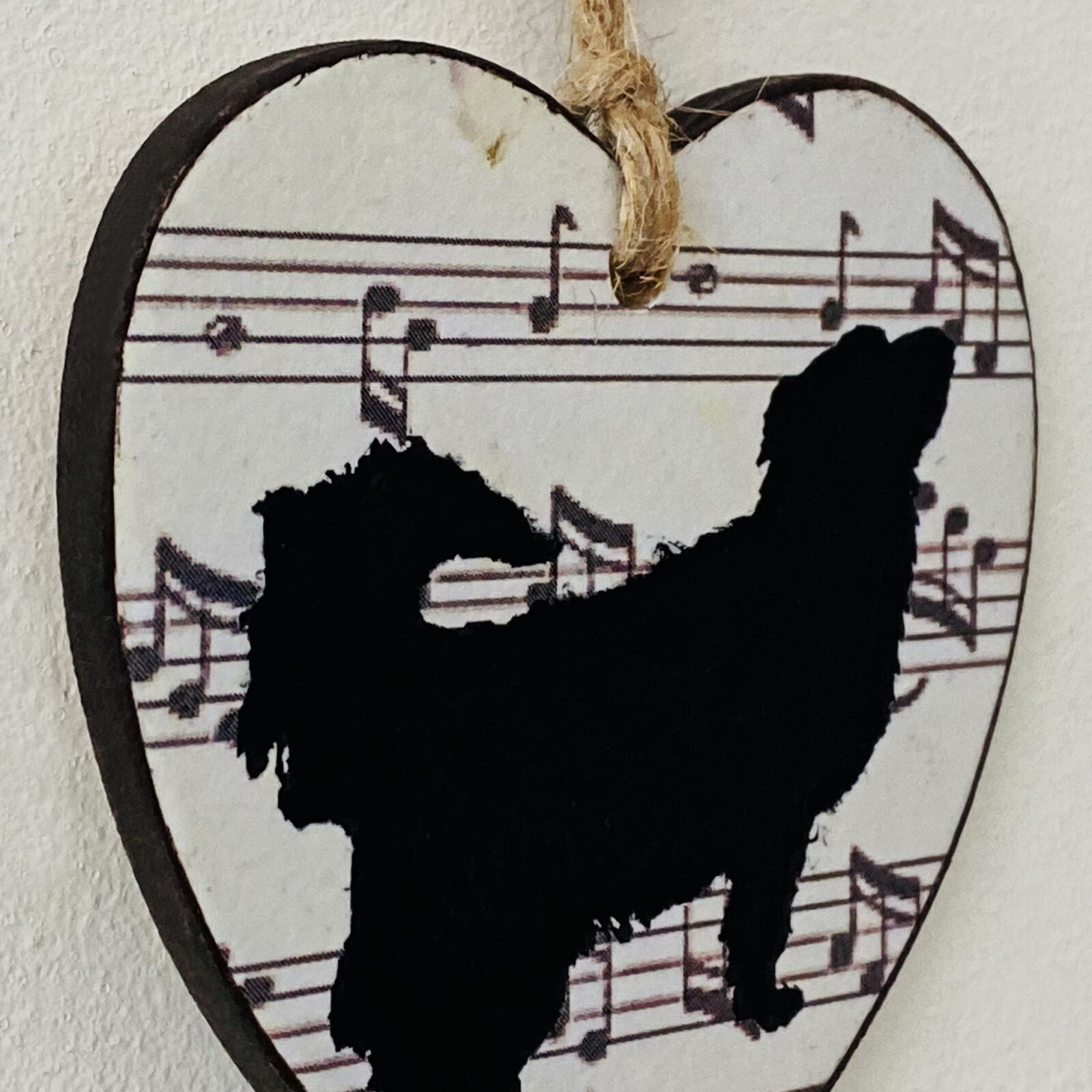 Beautifully finished, with an acrylic painted Kokoni on a music sheet background. A hand made Kraft card tag, detailing the dog breed compliments the design.